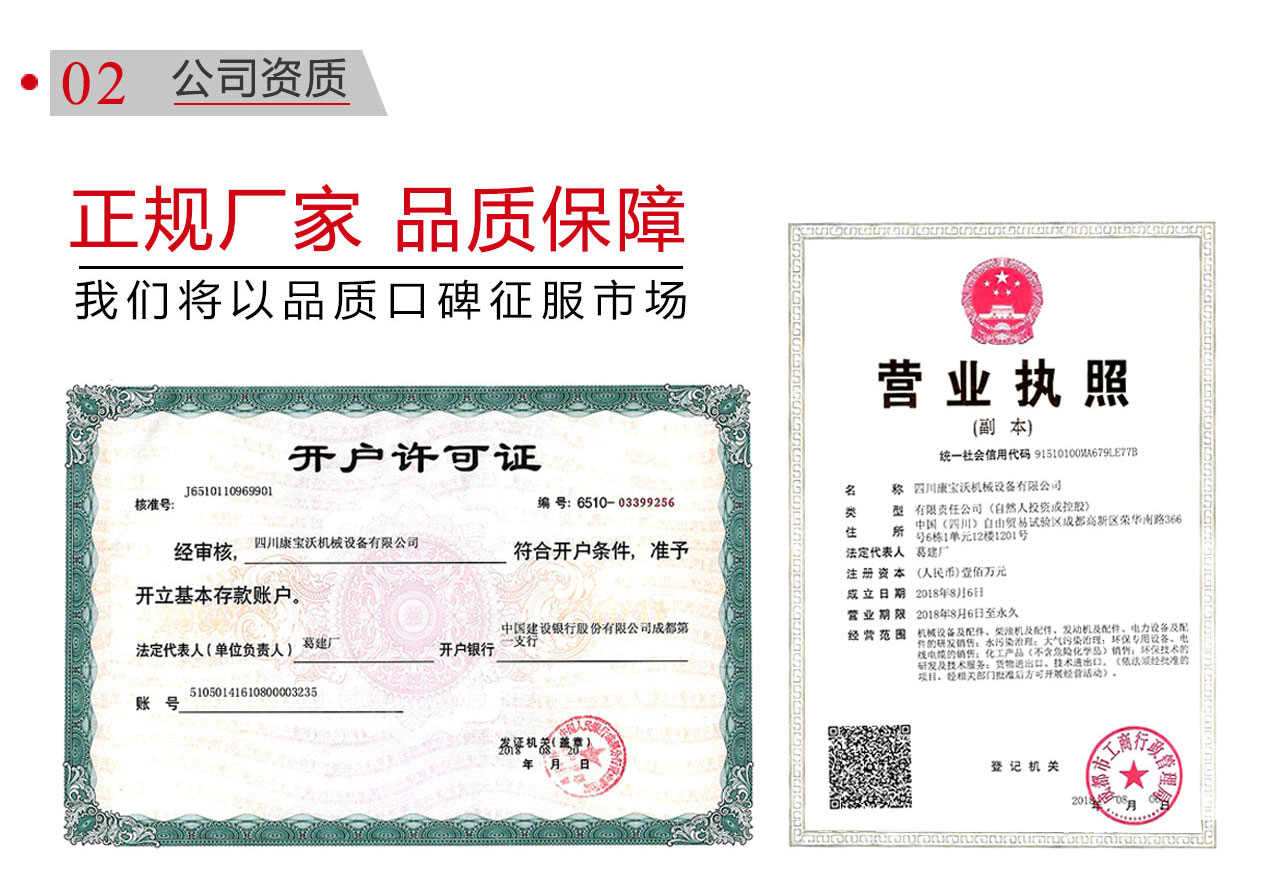 四川康寶沃機械設備有限公司是一家集加工、銷售、售后服務于一體的責任有限公司,主營:濰坊、上 柴、玉柴、康明斯等各類品牌30kw-2000kw柴油發電機組、靜音式發電機組、移動發電機組、水泵機組等,公司扎根成都,產品服務行業涵蓋房地產、醫院、銀行、學校、工業園、養殖、商場、礦山、冶金、化工、粉煤、鉆井、高速公路、施工橋梁等各行各業,本公司一貫堅持“質量保證,用戶至上,優質服務,信守合同”的宗旨,憑借著專業的技術、先進的生產工藝、精良的設備、良好的產品質量使得公司不斷發展,客戶遍布全國各地,公司具有 一支勤懇、年富力強、業務精通的售后隊伍,他們時刻謹記“技術決定質量,誠信創立口碑”的客戶服務宗旨,積極匯集吸收國內外先進技術,不斷提升自己,先后多次圓滿完成客戶交予的各項任務。
